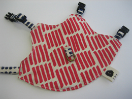 ビビットピンクのパターンはウサちゃんを元気いっぱいにフィールドへと誘います。しっかりとした生地、made in Japanの縫製技術きらウサギ オリジナルハーネスです。